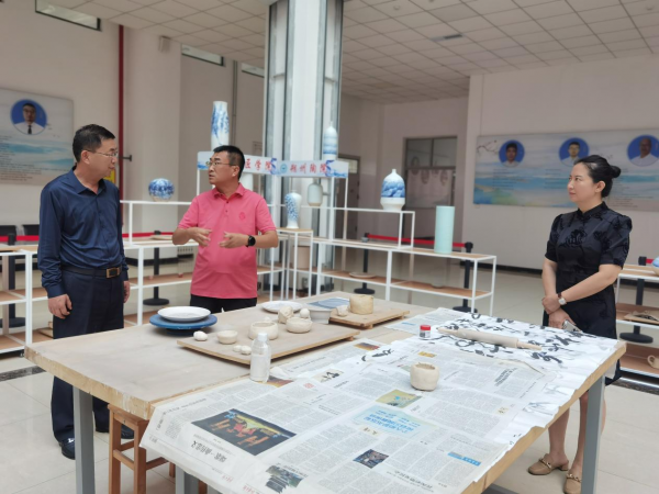 会后,一行人参观了学院实训中心、大师工作室、师生精品作品展厅、陶瓷教学生产线等地。
